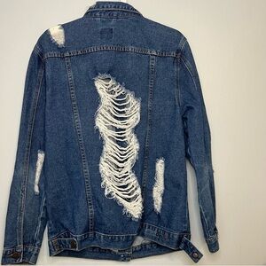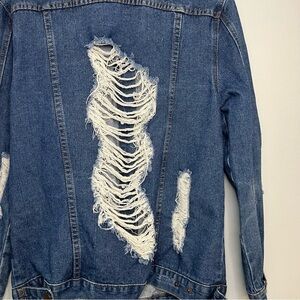 BBJ Women’s Distressed Denim Jean Jacket Size M 100% Cotton Blue Was Long Sleeve
