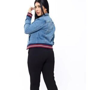 BBJ Los Angeles Stripe Sweater Rib Trim Hem and Cuff Denim Jacket.