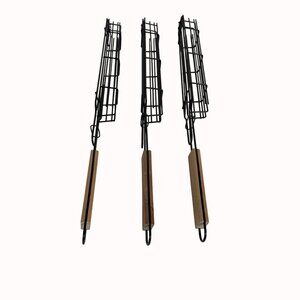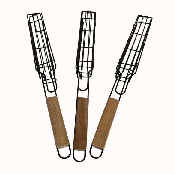 BBQ Grill Basket Skewers Set of 3 Picnic Tailgate Home Grilling Cook Tool Veggie