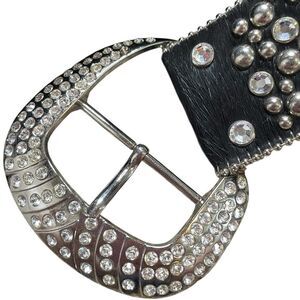 B.B. SIMON Fur and Crystal Embellished Western Belt Size Large