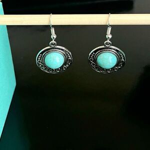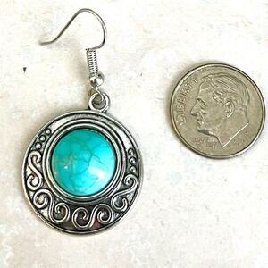 BBT Southwest Style Turquoise and silver 1 1/2” Dangle Earrings. A great value of striking earrings at fashion pricing. Sterling Silver plated with Turquoise howlite accent. Let’s make it yours!