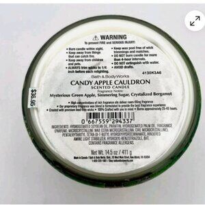 Description: Rare retired candle. Complete wrap around label. Decorative lid. Scent Notes: Mysterious Green Apple, Simmering Sugar, and Crystallized Bergamot.