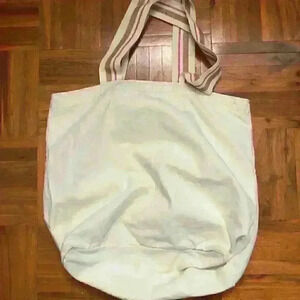 BBW Bath and Body works beige canvas tote with inner pocket