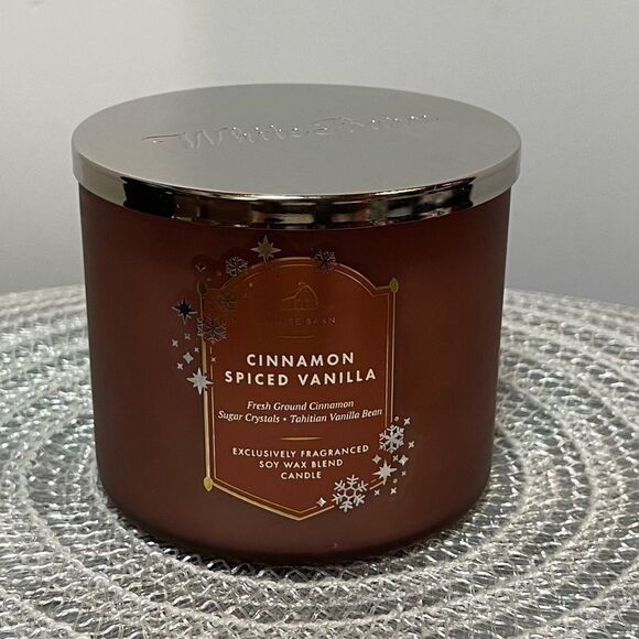 BBW Cinnamon Spiced Vanilla 3 Wick Scented Candle NWT