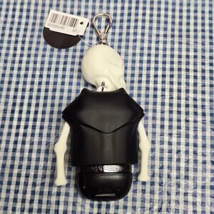 Bath & Body Works Glow In The Dark Dapper Skeleton Pocketbac Holder & Black Tie Refill. This convenient clip attaches to your backpack, purse, keys and more so you can always keep your favorite refill close at hand.