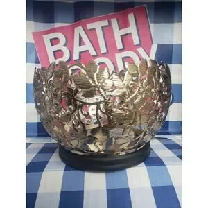 Bath and Body Works Gold Leafy Vine Bowl Large 3 Wick Candle Holder.