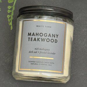 Mahogany Teakwood White Barn Bath & Body Works mason jar single wick candle 7 oz./198 g.