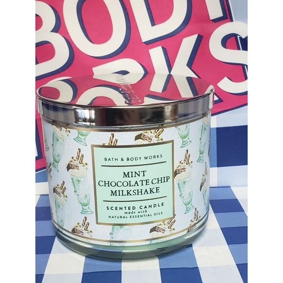 Bath & Body Works Mint Chocolate Chip Milkshake 3 Wick 14.5oz Candle