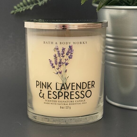 Pink Lavender & Espresso Bath & Body Works single wick candle 8 oz./227 g.