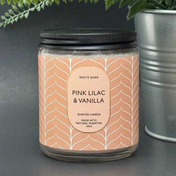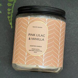 Pink Lilac & Vanilla White Barn Bath & Body Works mason jar single wick candle 7 oz./198 g.