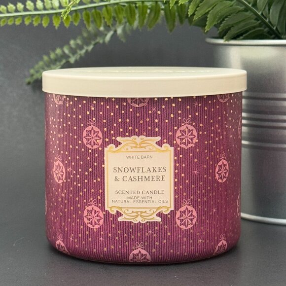 Snowflakes & Cashmere White Barn Bath & Body Works 3 wick candle 14.5 oz./411 g.