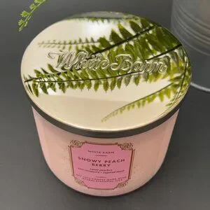 BBW Snowy Peach Berry White Barn Bath & Body Works 3 Wick Candle