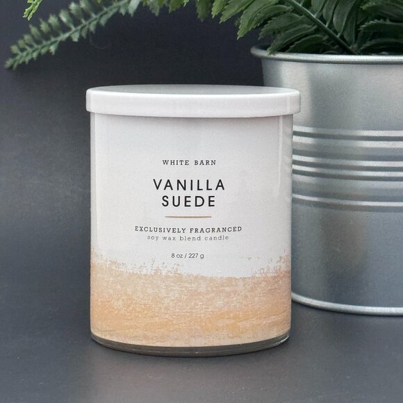 Vanilla Suede White Barn Bath & Body Works single wick candle 8 oz./227 g.