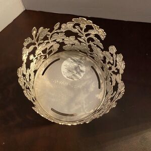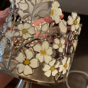 Pedestal silver tone white wildflower / daisy candle holder for 3 wick bath and body works candles.