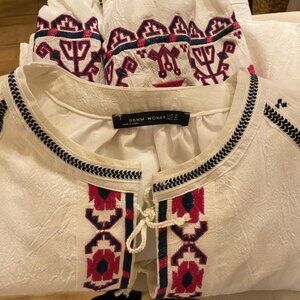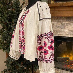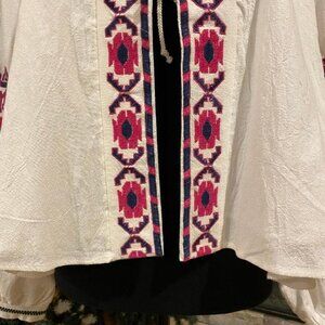 BBWM Woman White Embroidered Boho Peasant Lined Double Tie Front Jacket Size M