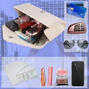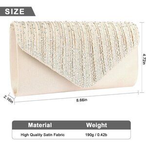 Exquisite Design: Featuring a front flap with a magnetic button closure, this clutch exudes elegance. Crafted from high-quality satin fabric and adorned with a clear rhinestone overlay, complemented by sparkly glitter rhinestones of various sizes on the flap, creating a captivating visual appeal.