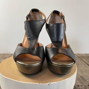 BC Black Leather Wedge Heel Shoes Size 7.5 EUC
