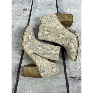 BC Born in California snale print leather ankle boots sz 7 light beige tan