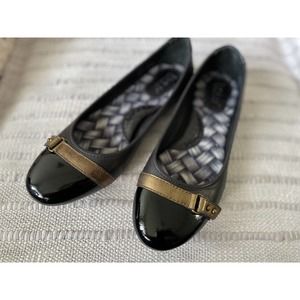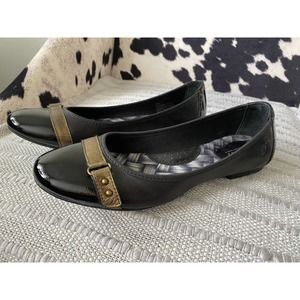 BØC Børn Masia Ballet Flats Patent Leather Black Cap Toe Gold Strap ~ 6.5