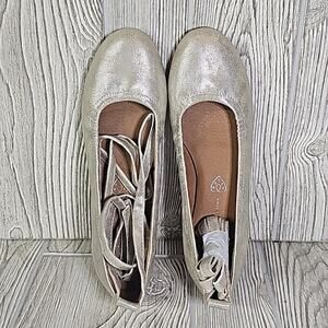 BC Footwear Metallic Have A Heart Ankle Strap Flats Womens Size 6.5 NEW