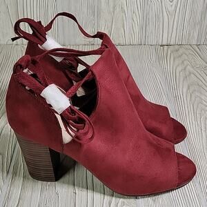 Stand tall + so fierce in these vegan suede ankle booties from BC Footwear. Peep-toe bootie with cutouts at ankle, featuring wrapped tie closures. Set on a covered block heel and rubber sole, perfect for strutting your stuff wherever you go.