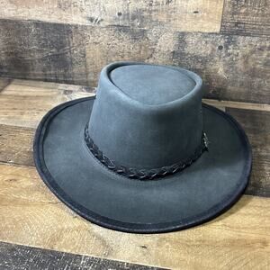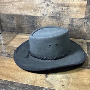 BC HATS steer hide leather AUSTRALIAN outback Black Large Hat Cap. Condition is Pre-owned. Shipped with USPS Ground Advantage.
