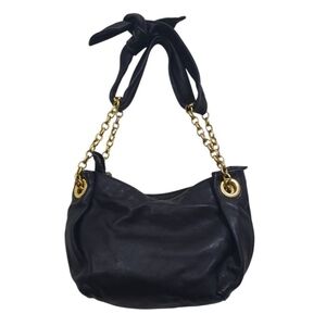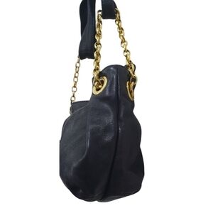 This B. Cavalli shoulder bag is the perfect addition to any outfit. Crafted from high-quality leather in a sleek black color, it exudes sophistication and style. The bag features a spacious interior, making it ideal for carrying all your daily essentials. The exterior is adorned with the signature B. Cavalli logo, adding a touch of luxury to the design. Whether you're headed to work or a night out on the town, this bag is sure to complement any outfit.