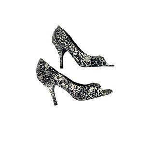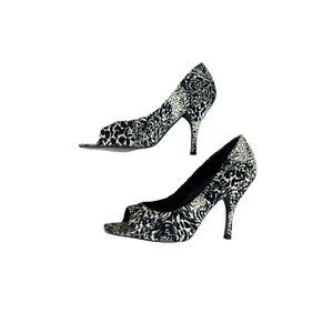 BCB GENERATION Women's Size 10 Black White Printed Peep Toe Heels