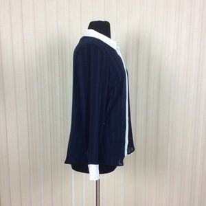 BCB Generation, Sheer, Boyfriend Blouse. Size Large, Color Navy.