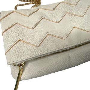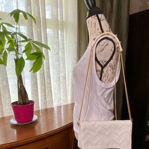 BCB Generation White Clutch purse with chevon weave and two optional shoulder straps.