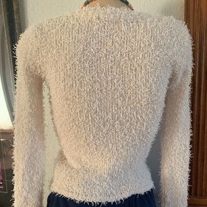 This women’s white long sleeve stretchy short V neck shaggy sweater is in Excellent condition. Light weight and a great spring sweater! Size XS