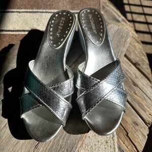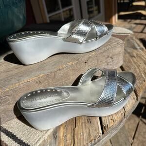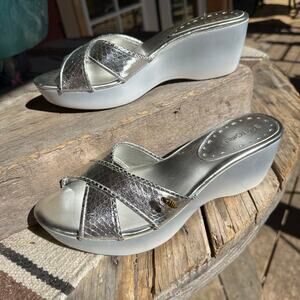 BCB Girls Metallic Silver Criss Cross Strap Wedge Sandals Sz 6.5 Croc Embossed