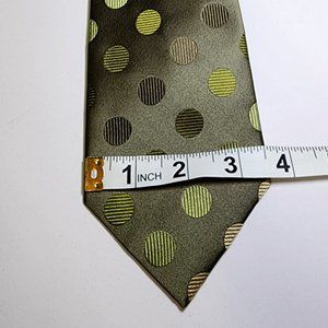 Stunning olive green BCBG designer silk tie with a unique circle pattern which changes tone in different light. Worn only a few times, this tie is LIKE NEW and shows no signs of wear & tear, blemishes nor stains. Cared for in a smoke free environment. Add this great looking accessory to your wardrobe and instantly impress!