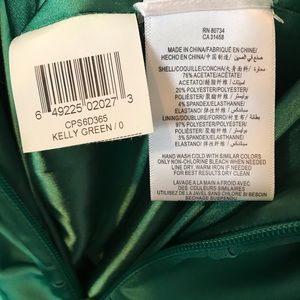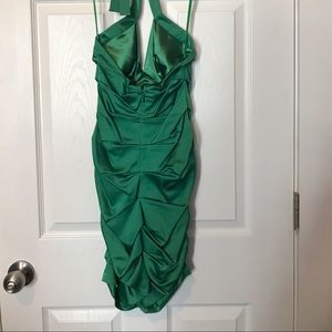 Green tie back halter dress with rear zip closure.