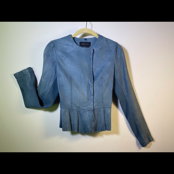BCBG Genuine Leather Jacket with removable blue belt!