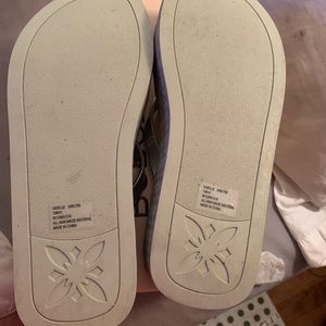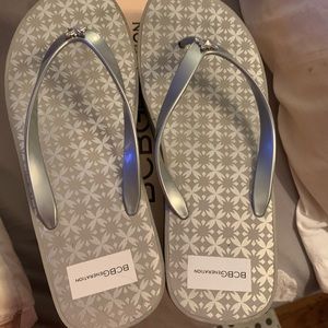 They are white and grey I love them. Flip flops but very cool ! Very comfortable!! Super stylish love the platform I’m 5 ft so I felt tall. But never wore them ! You can’t go wrong. I tried them on in 9 and the back of my foot didn’t feel right so I got a 10. But I normally wear a 9