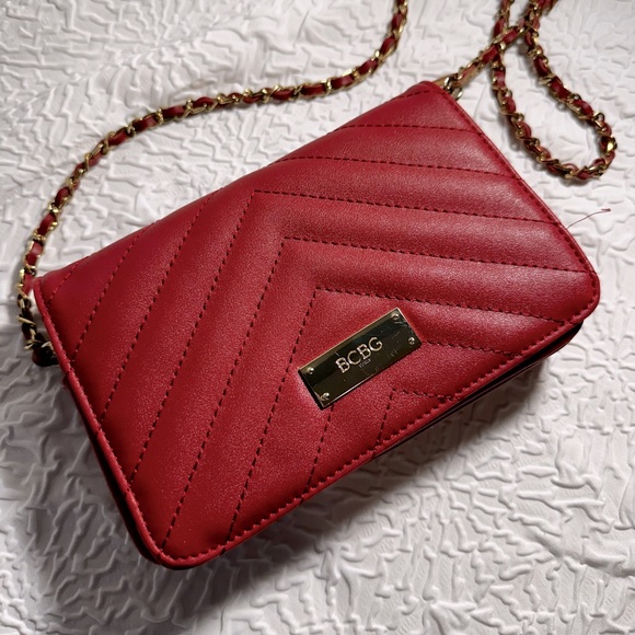 Crossbody, red with gold accents.
