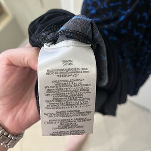 Very flattering fitted stretchy dress by BCBG. Worn to work many times, but still in great condition. Fitted through the bodice, but with a hip accentuating drape extending from the front center of the dress to the back, adding some beautiful drape. No pockets! Don’t be fooled by the drape. 🙃 pretty stretchy!