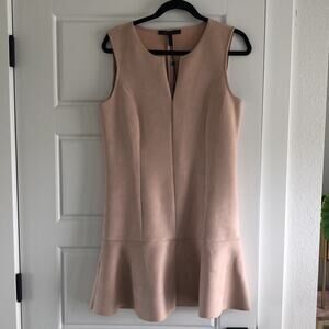 Beautiful blush drop waist dress. The slight ruffle at the bottom makes this dress flirty. The faux suede makes it a great transitional piece. Lightly lined. The fabric is very soft and make this piece stunning.