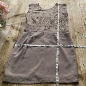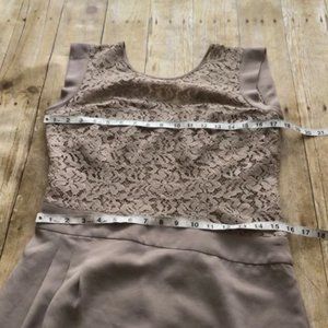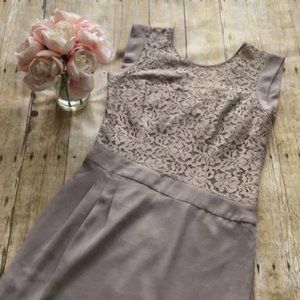 Features: cap sleeve dress with lace bodice. Top is lined starting at the bus till one. Fully functional exposed back to with vee. Asymmetrical Cut to the waist. NWT