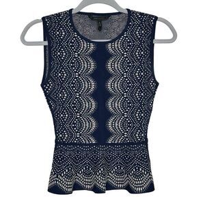 BCBG Alonya Navy Blue Peplum Top Knit Skirt Set |XS