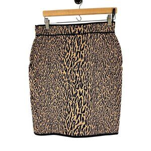 BCBG Animal Print Edgy Skirt L Brown Preppy Old Money Classic Leopard Urban Chic