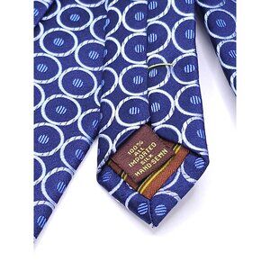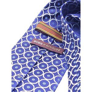 BCBG Attitude Mens Silk Tie Blue & White Circle Pattern