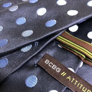 BCBG Attitude Navy Blue Polka Dots Mens Hand Sewn Silk 3.5 Inch Neck Tie