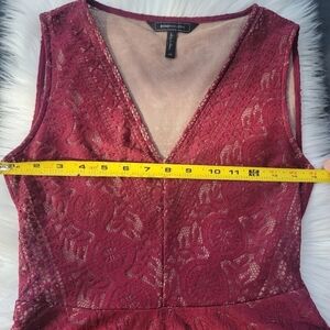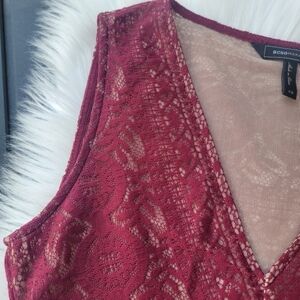 gorgeous dark red/burgundy/maroon lace sleeveless tank top with nude underlay