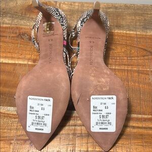 BCBG BCBGMAXAZRIA AVERY Multicolor SNAKE LEATHER HIGH HEEL SANDALS, Women’s 8.5