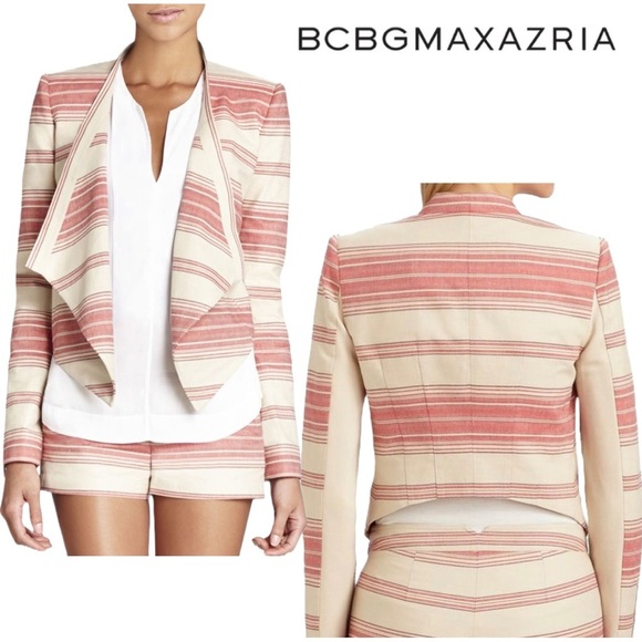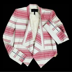 BCBG BCBGMAXAZRIA Abbey Stripe Abbey Cropped Blazer Jacket Asymmetrical Drape XS