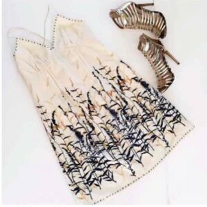 BCBG BCBGMAXAZRIA Silk Blend Bamboo Cream Floral Slip Tank Mini sundress Dress