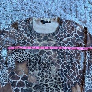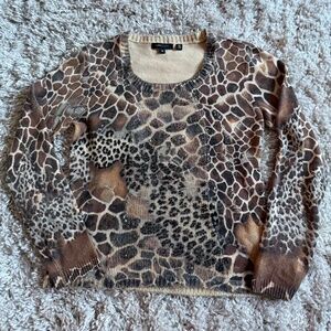 y2k bcbg beaded cheetah print sweater 🤍 brand: bcbg maxazria size: medium, can fit small condition: preloved but no damage - insane y2k leopard / animal print sweater - the front is beaded and has sequins - lightweight sweater - super comfy and stylish indie style sweater #y2k #y2ktop #beadedtop #bcbg #bcbgmaxazria