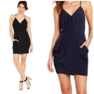 Beautiful BCBG black XXS dress. Super flattering and it has pockets! The straps are adjustable so you can customize it to fit you perfectly and there is a small button at the chest so you can go from day to night by opening it for a more low cut look. Very versatile, very flattering.